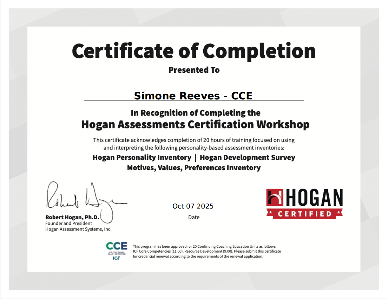 This certification provides accreditation to interpret and debrief the Hogan Personality Inventory (HPI), Hogan Development Survey (HDS), and Motives, Values, Preferences Inventory (MVPI). Grounded in decades of research on reputation and performance, the Hogan approach links personality to leadership effectiveness, derailment risks, and underlying values. The certification strengthens the capacity to integrate data-driven psychological insights into coaching and leadership development, enabling nuanced feedback on potential, style, and culture fit.